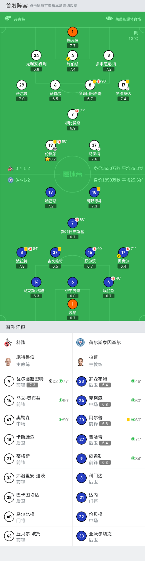 下半场补时第7分钟,科隆球员瓦尔德施密特打入一球。