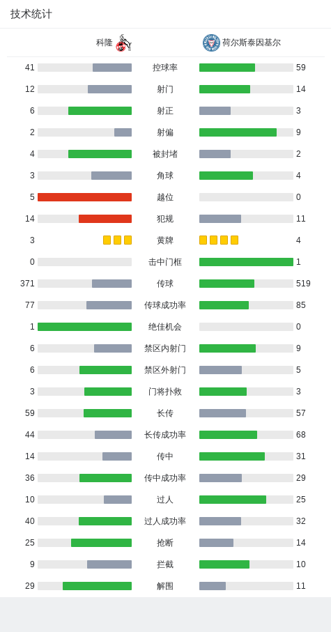 科隆近期状态非常不理想,已经遭遇了2连败。球队上轮联赛主场对阵博德伯恩,控球率41%,13次射门3次射正,虽然J·蒂尔曼的进球打破了场上僵局,暂时取得了场上领先,但好景不长,还是被对手逆转翻盘,最终以2-1拿下了对手。另外,科隆本赛季主场成绩强于客场,6个联赛主场取得了2胜1平3负的成绩,其主场排名联赛第7位。