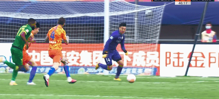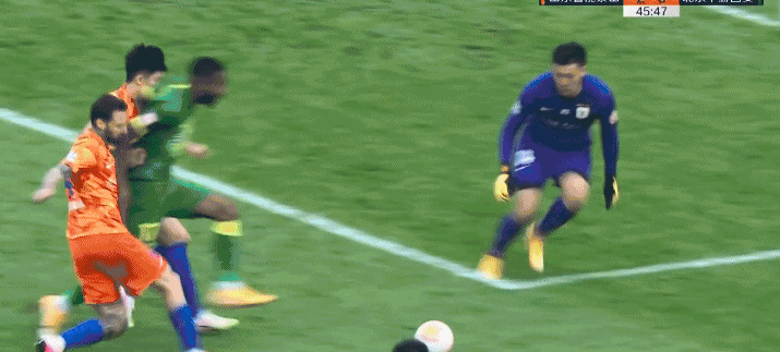 69分钟,国安李磊传中,巴坎布跃起头球,国安将比分逼平为2-2。