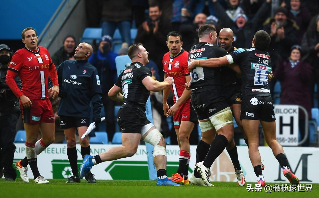 本轮的重头戏当属埃克塞特酋长与萨拉森人的狭路相逢。双方在近7个赛季拿下了6次联赛冠军,此战成为名副其实的“国家德比”,桑迪公园球场座无虚席。
