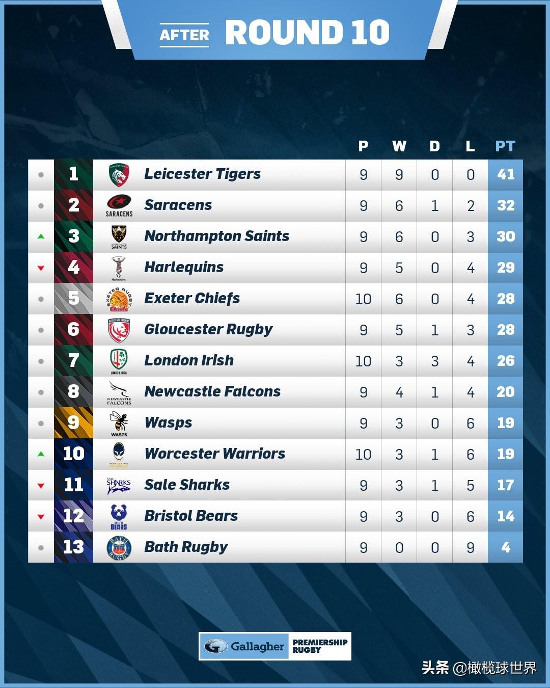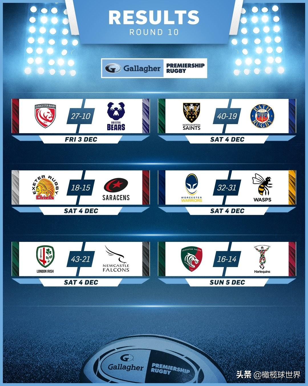 北京时间上周末,2021-22赛季英格兰橄榄球超级联赛结束了第10轮的较量。