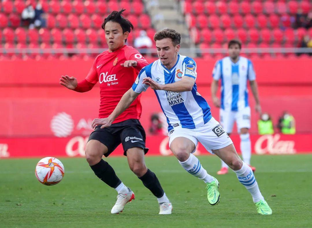 第28分钟,德托马斯在前场接到队友的头球摆渡,他转身抽射,皮球稍稍打高。第32分钟,马洛卡取得进球,禁区前偏右的任意球机会,日本球员久保建英来主罚,他的射门绕过人墙直窜球门左侧,洛佩斯扑救不及,马洛卡1-0领先西班牙人。