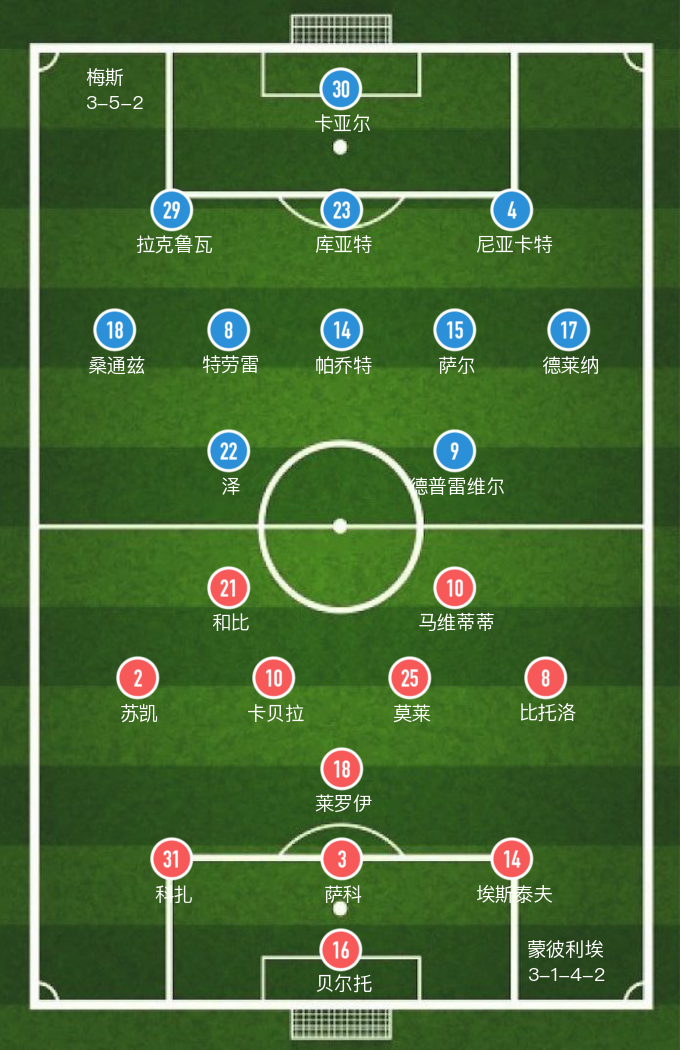 第86分钟,蒙彼利埃的莫莱被德莱换下。