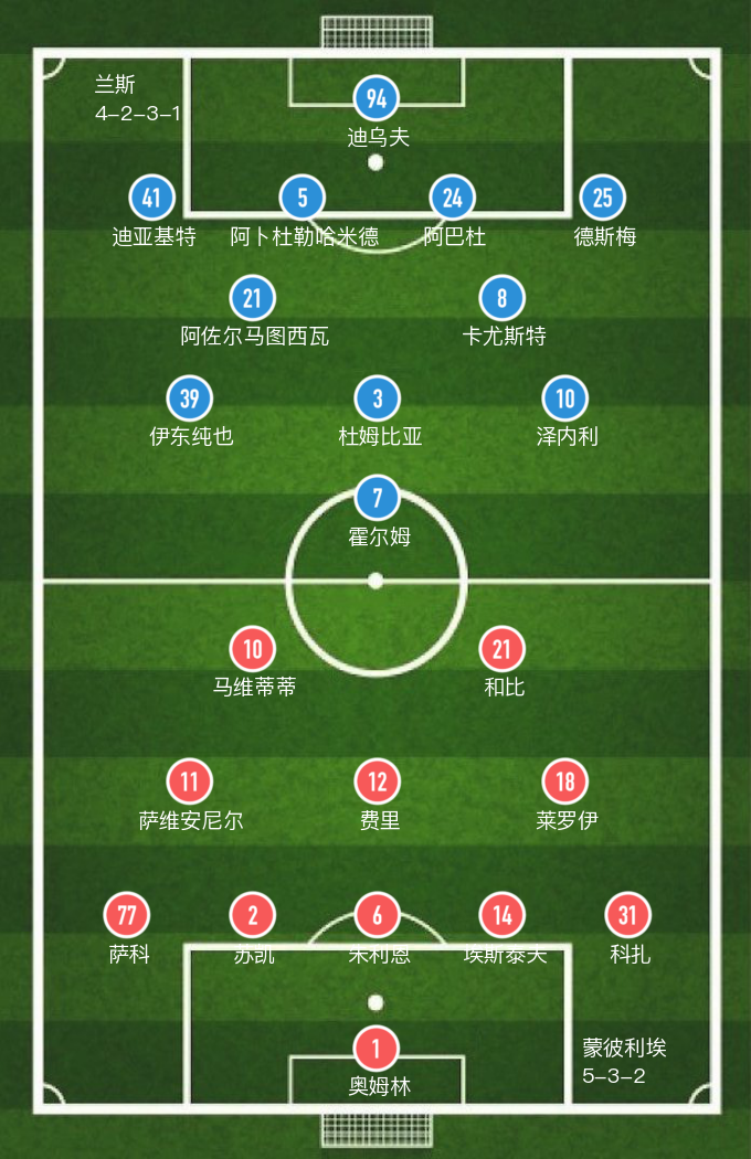 比赛第83分钟,兰斯使用替补洛科换下德斯梅,意图加强进攻。