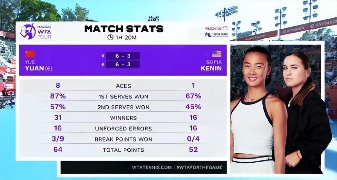 袁悦则不然,此次在香港250赛交手,不但全程没有任何的被动,而且发挥稳中有升,一直让肯宁不断在承受着较大的压力,最后以两个6比3战胜前澳网冠军赢得还是比较轻松的。