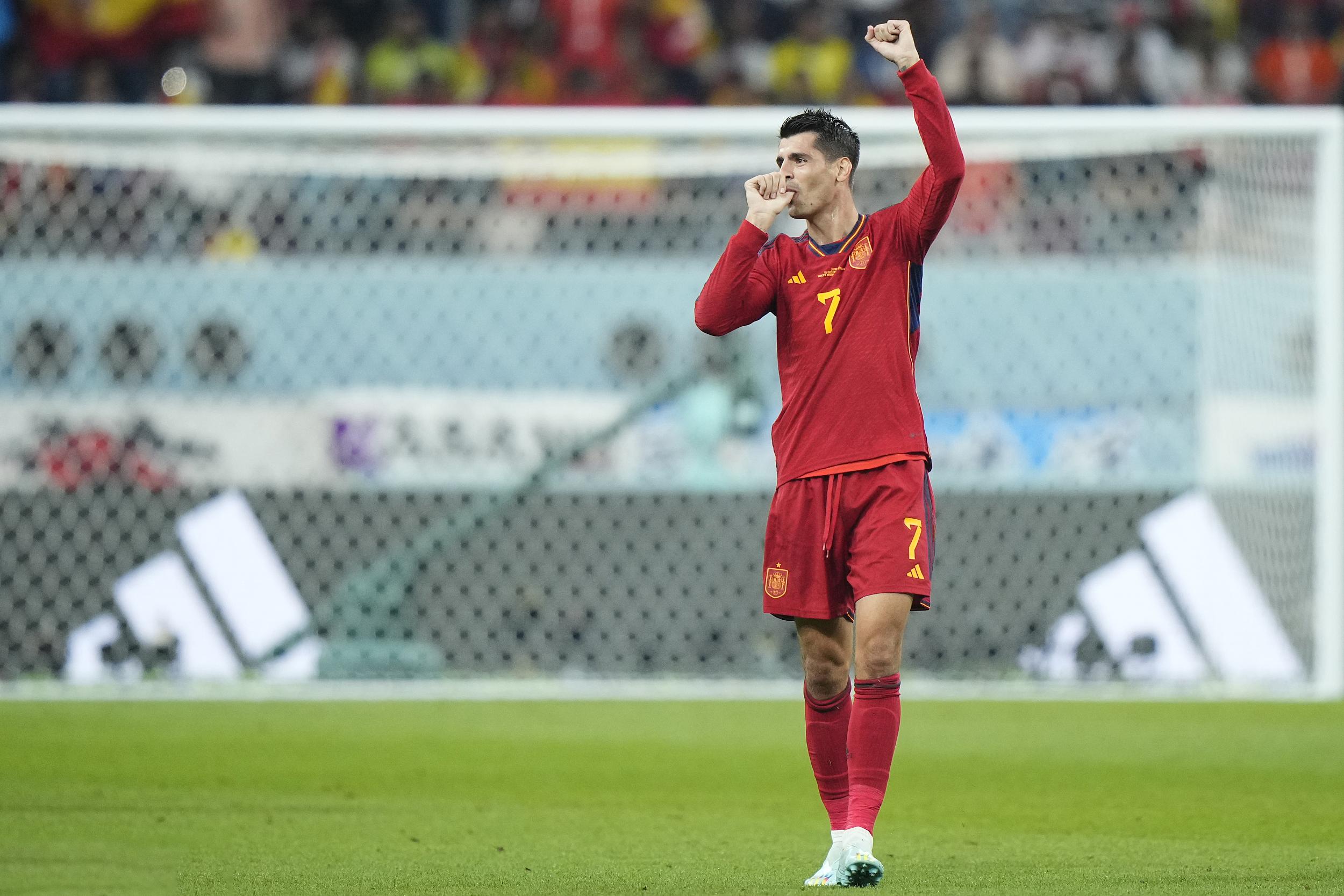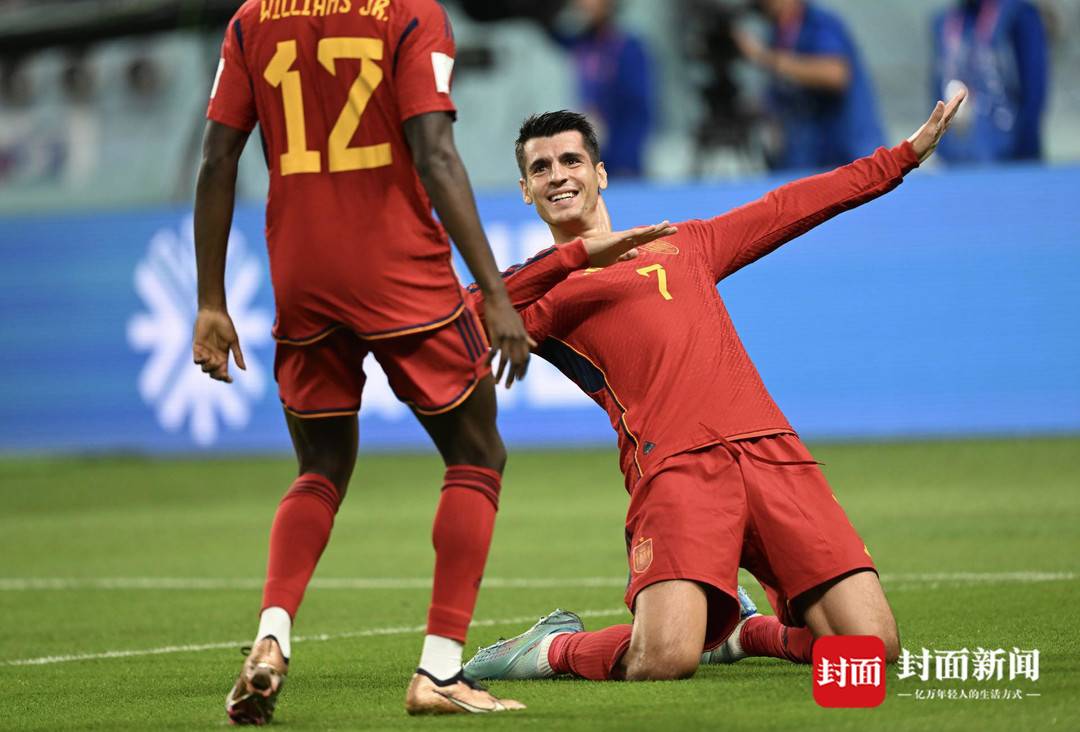 第12分钟,西班牙获得绝佳机会,加维右路穿插跑位平扫门前被挡出,尼科-威廉斯得球回敲,阿斯皮利奎塔斜45度传中制导助攻莫拉塔抢点头球破网,莫拉塔三场小组赛场场破门,西班牙1-0领先。