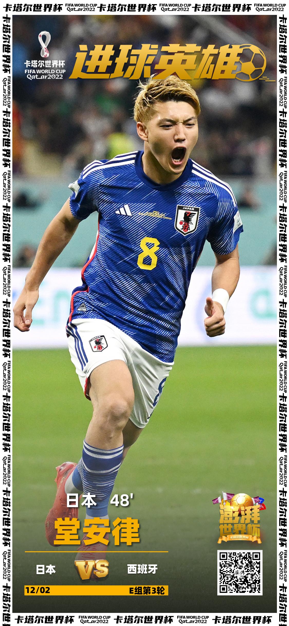 北京时间12月2日3:00,卡塔尔世界杯小组赛E组第三轮继续进行。凭借堂安律和田中碧的进球,日本2-1逆转击败西班牙,两队携手晋级16强。