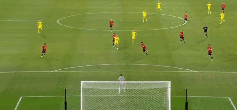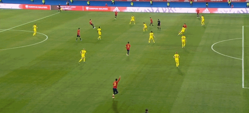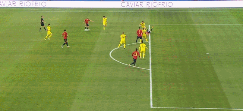 第23分钟,科克在左侧策动攻势,随后亲自冲入禁区,一脚抢射稍稍偏出。前25分钟,西班牙队的控球率达到81%!第29分钟,奥尔莫禁区外左侧低平球传中,科克前插到禁区里一脚弹射,球打高了。