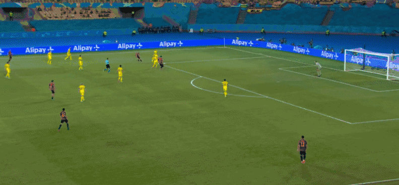 第14分钟,埃尔莫索点球点附近回做左路弧顶卡蒙娜远射稍稍偏出远门柱。↓