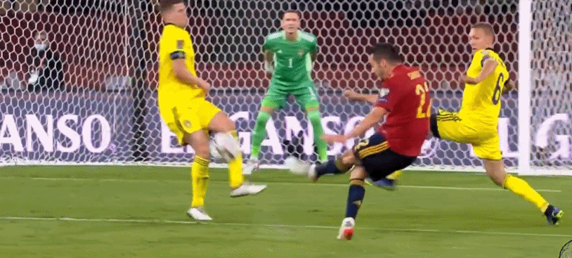 扑出,莫拉塔补射建功!西班牙1-0领先瑞典!