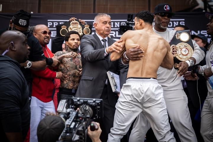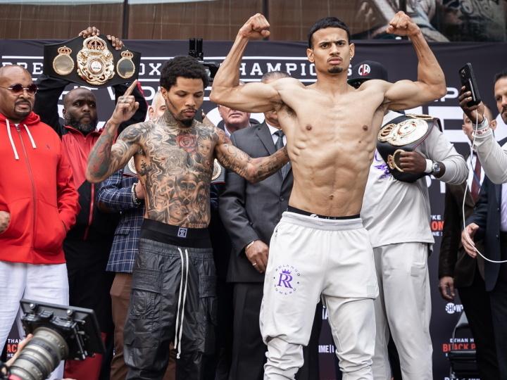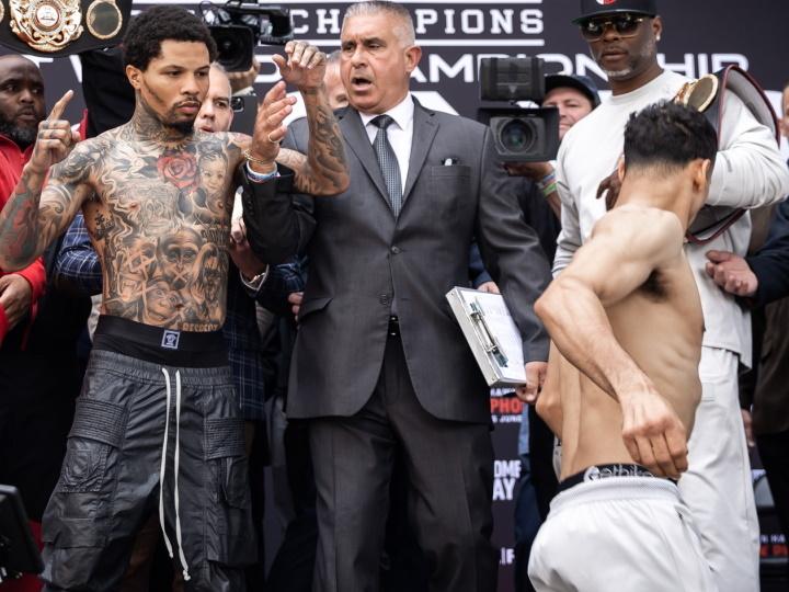 卫冕冠军戴维斯随后登场,他的体重是133.8磅,也是一次过关。他的体重比罗梅罗轻了0.65磅。看得出状态很好,之前戴维斯到了140磅挑战巴里奥斯,并11回合残暴KO获胜。目前戴维斯已经是3个级别的世界冠军。