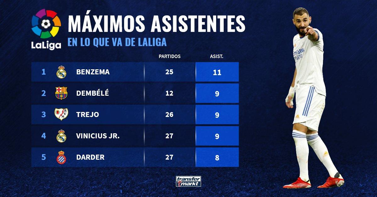 皇马的很多进球都由球员之间通过配合打进,本泽马和维尼修斯是球队中在西甲联赛助攻最多的两名球员。