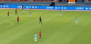 第18分钟,天海策动攻势,张成林前场左路带球内切摆脱防守起脚远射,颜骏凌在门前稳稳将球抱住。第25分钟,王燊超前插到门前接奥斯卡挑传抢点冲顶,门将张鹭奋勇将球挡出,张成林随即解围。