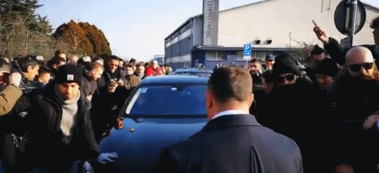 离开机场的道路上,AC米兰的球迷兴奋至极,高喊着伊布的名字,举起手机疯狂拍照,将道路两旁堵得水泄不通。伊布露出微笑,向球迷竖起大拇指。