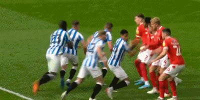 第12分钟,詹姆斯-加纳主罚前场左侧任意球45度传中,耶茨头球攻门稍稍偏出。