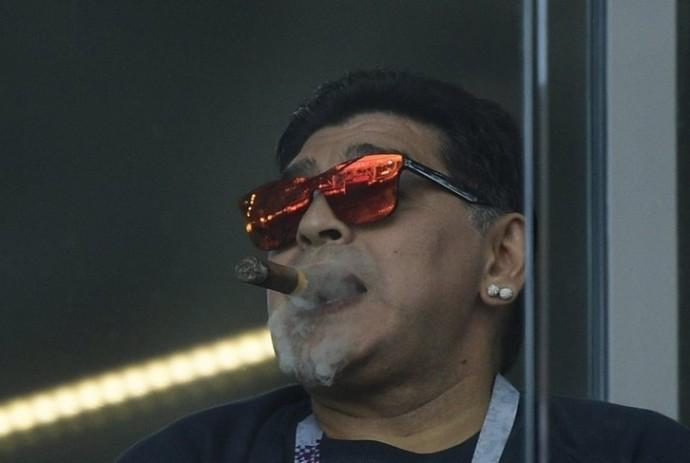 阿根廷的比赛,球王马拉多纳当然要来到现场。虽然赛场禁止吸烟,但老马依然我行我素。