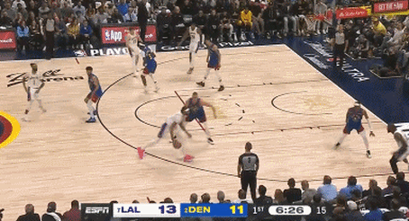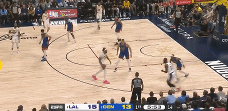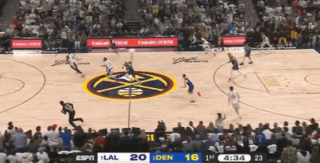 第一节,詹眉之间连续配合!湖人18-13掘金