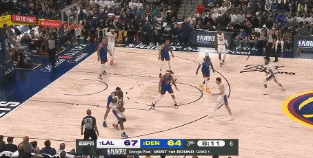 第三节,掘金反击三分再中反超9分!湖人75-84掘金