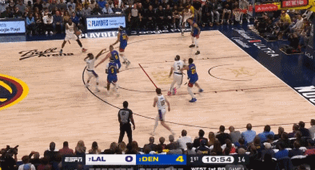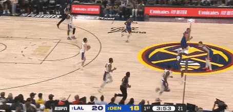 第二节,12分领先这就没了!约基奇二次进攻,湖人53-53掘金