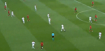 38' 内维斯中圈传球,B席右肋直塞,格德斯低射入远角,2比0