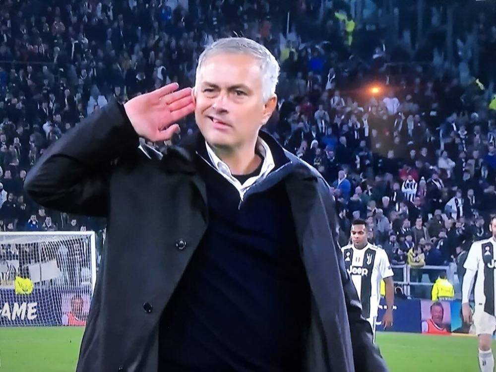 直播吧11月8日讯 曼联2-1逆转尤文,比赛结束后穆里尼奥夸张的回应着客场嘘声。