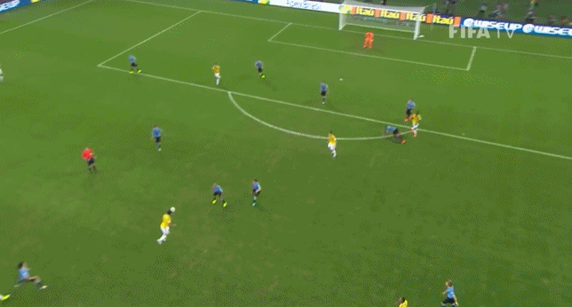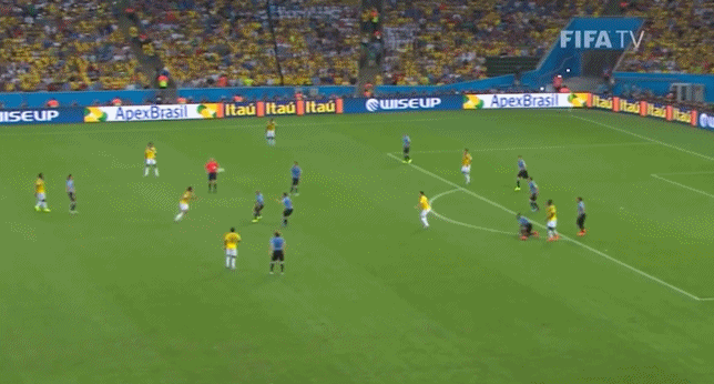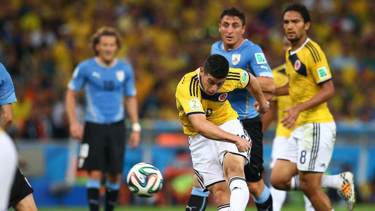 詹姆斯 · 罗德里格斯在2014年世界杯对阵乌拉圭的比赛中进球