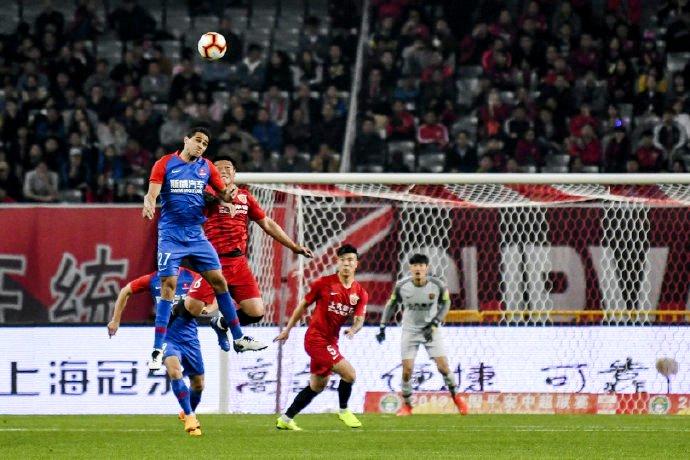 上半场比赛结束,上海上港主场暂时0-2落后重庆斯威。