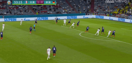 1分钟后,基米希和埃尔南德斯抢球时被后者推倒,基米希在倒地时右脚抬起,踢到了埃尔南德斯的脸上。上半场结束,法国队暂时1-0领先德国队。