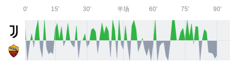 第31分钟,罗马传中被解围,迪巴拉禁区后排远射打门略微偏出左侧立柱。第43分钟,尤文图斯左路传中,禁区内争顶被挡后,科斯蒂奇迎球抽射,被防守球员在门线上极限解围。