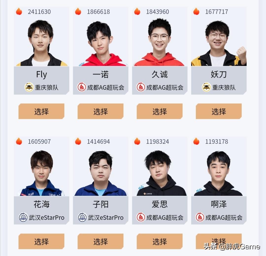 那么接下来看看选手个人的人气排名,看到下面这些选手,胖虎只想说一句“御三家,yyds”!