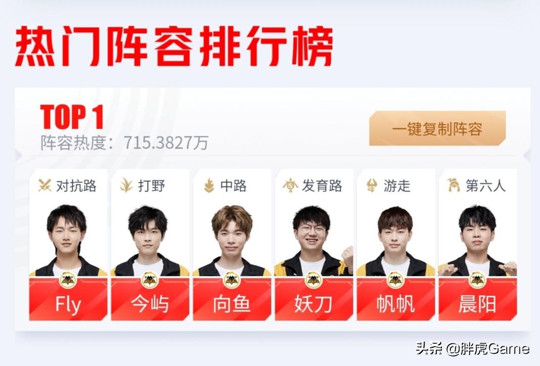 根据官方发起的“心目中的电竞国家队”投票活动显示,经过玩家票选过,在热门阵容排行榜单上排名第一的是【重庆狼队】全员,阵容热度达到了715.3827万,力压成都AG与XYG、eStarPro,在阵容热度上成为断层第一,是当之无愧的人气之王!