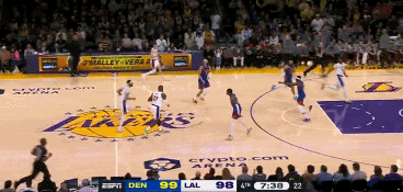 第四节,最后时刻詹姆斯上篮无济于事,湖人114-121掘金