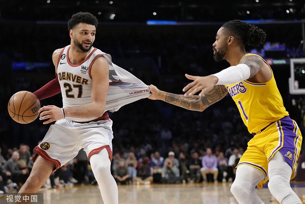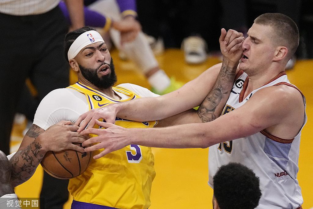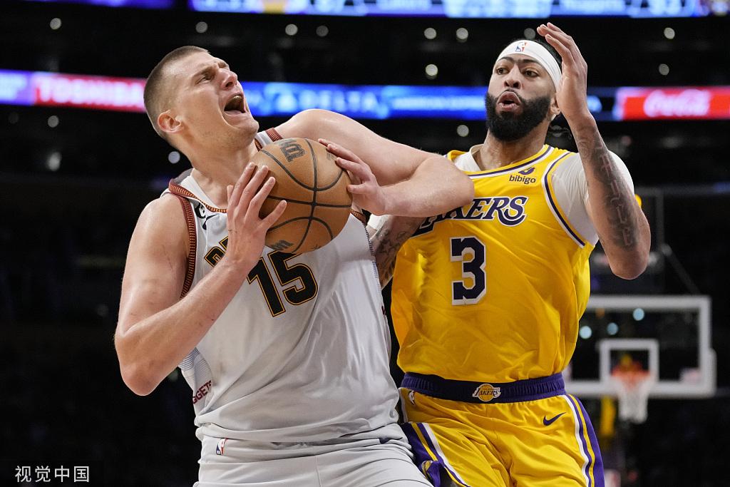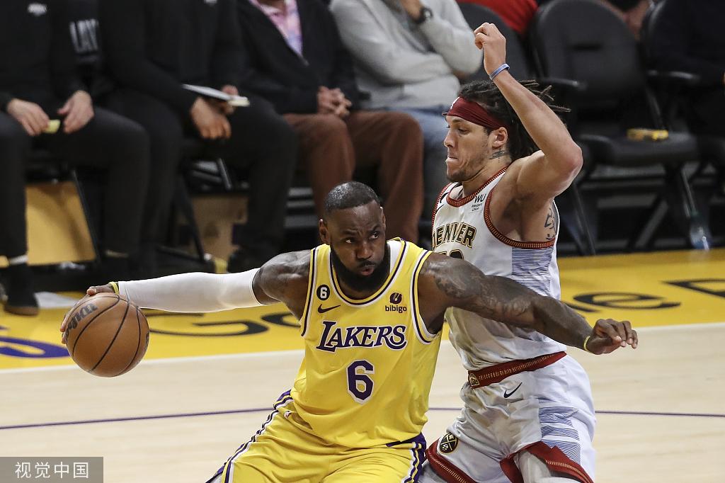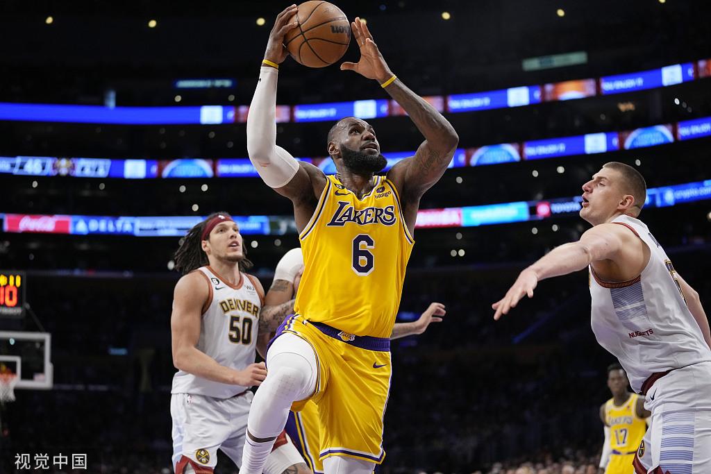 第四节,掘金始终保持着领先,但詹姆斯连续制造约基奇两个进攻犯规,让后者领到本场比赛第五犯。