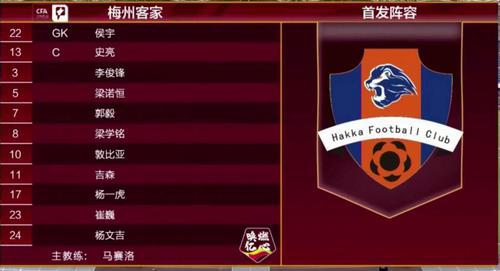 此役,梅州客家双外援搭档梁学铭,后防大将杨一虎火线复出,郭毅本赛季首次首发。