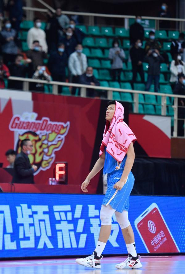 ↑北京首钢队球员范子铭在赛后离场。