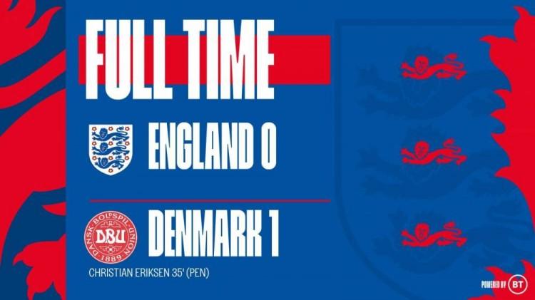 第35分钟,丹麦第1球!埃里克森!助跑打中上,骗过拉什福德!丹麦1-0英格兰!↓