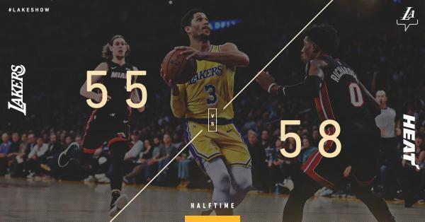 北京时间12月11日消息,湖人坐镇主场迎战2连胜热火,半场比赛结束时,湖人以55-58落后热火。韦德半场5投0中,一分未得,但有6次助攻进账;詹姆斯贡献9分7助攻和4篮板,库兹马轰下16分。