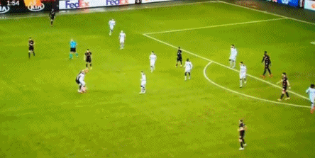 直播吧10月23日讯 欧联杯首轮,流浪者vs标准列日补时阶段,流浪者前锋凯马尔-鲁夫在本方半场连续过人后起脚吊门!皮球长距离飞行后落入了球网!