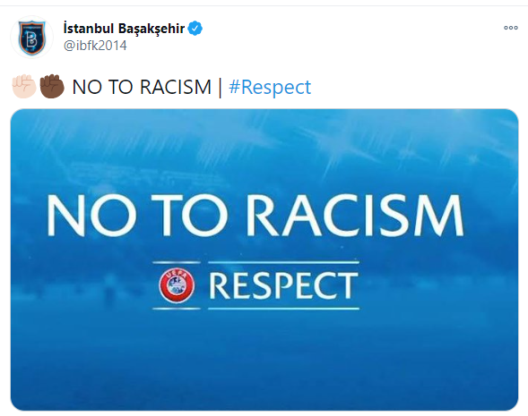 随后伊斯坦布尔在官方推特上表示,拒绝种族主义。