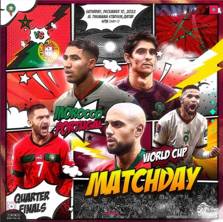 摩洛哥队官方账号在社交媒体上发布了为此役制作的海报,预热这场重要的比赛,阿什拉夫、布努、齐耶赫、阿姆拉巴特、恩内斯里出镜。