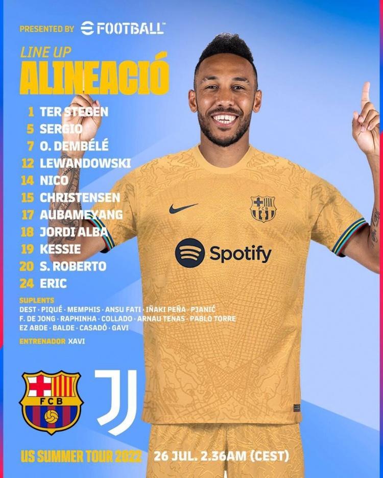 直播吧7月27日讯 08:30,友谊赛巴萨vs尤文,赛前首发名单公布。