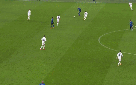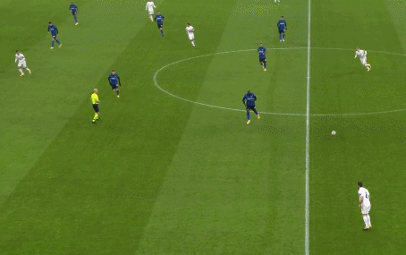 在稳固防守的同时,齐达内也没有放弃进攻。罗德里戈,包括之后维尼修斯的上场,都是为了保证前场的冲击力。国米虽然在变阵后压缩了空间,但毕竟他们只有十人作战。只要皇马在前场还有人员能进行冲刺接应,就依然有机会威胁对方的大门。