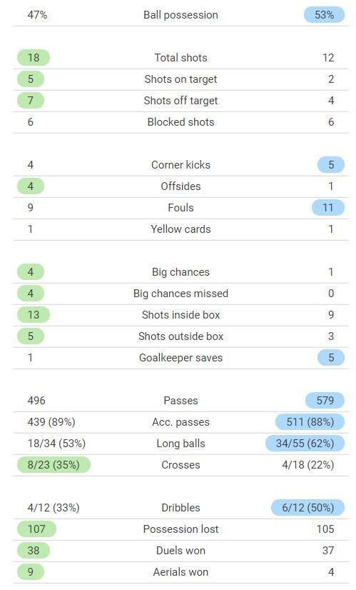 直播吧9月16日讯 在北京时间今天凌晨进行的欧冠小组赛中,皇马客场1比0小胜国米。SofaScore统计了两队本场比赛的数据。