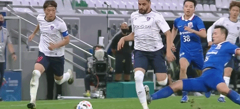 第69分钟东京获得前场任意球,莱昂德罗将皮球主罚到禁区内,被后卫奋勇给顶出。第72分钟于汉超输送直塞,金信煜启动过早落入到越位陷阱之中。