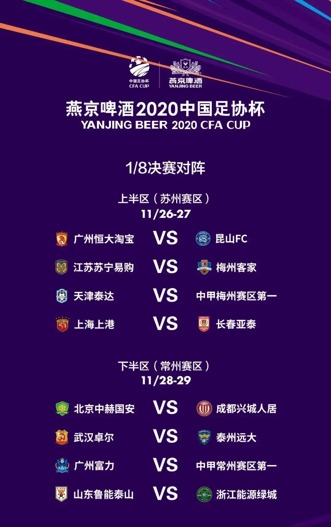2020中国足协杯半决赛赛程安排