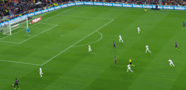 第50分钟,皇马扳回一城,右路伊斯科和巴斯克斯配合,伊斯科在小禁区右侧底线处横传,郎格莱解围将球踢疵,马塞洛进入禁区胸部停球过掉皮克,随后右脚捅射破门,巴萨2-1皇马。