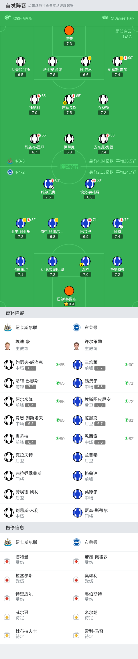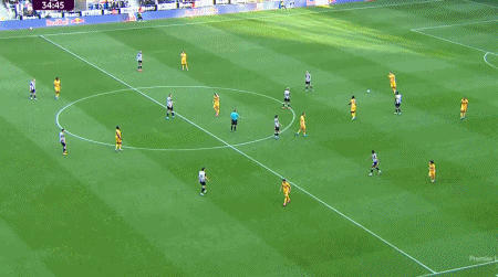 第35分钟,维尔贝克在对方包夹中强行破门,布莱顿1-0纽卡