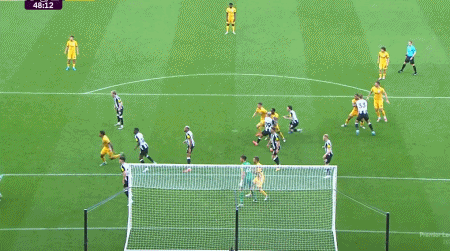第29分钟,墨菲右路传中,费尔特曼底线附近将球解围