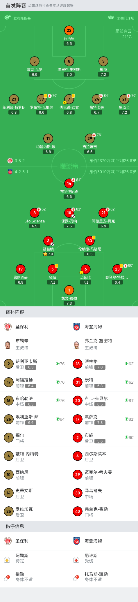 在德国足球顶级联赛首轮比赛中,圣保利主场迎战海登海姆。比赛中,海登海姆展现了强大的进攻实力。首先,保罗-万纳在队友派林格的助攻下成功破门,为海登海姆取得领先。随后,朔普纳接到洪萨克的传球,再次攻破对方球门,进一步扩大了比分优势。最终,海登海姆以2-0战胜圣保利,取得了本赛季的开门红。