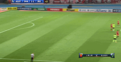 第39分钟,胡尔克前场中路得球送出直塞,金珍洙封堵大脚解围,蔡慧康中圈附近迎高空球将球顶向前场,伊比尼争顶解围失误将球顶入自家禁区,于海沿左路突入禁区迎球起左脚传中,包抄到门前的王燊超迎球头槌轰门命中,1-1,上港追平比分。